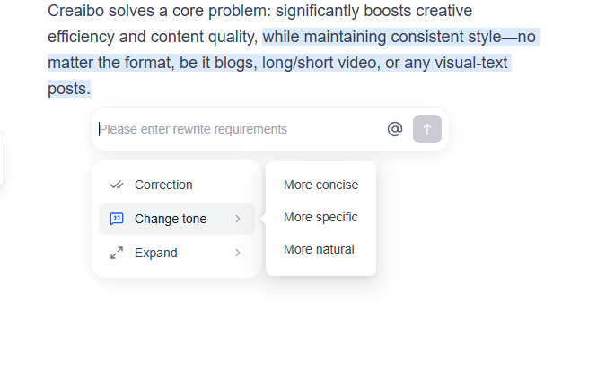 Transform your content with Creaibo's free AI rewriter. Our AI rewriter learns your writing style and rewrites text to match your unique voice. Whether you need an AI sentence rewriter or AI paragraph rewriter, our tool creates natural and engaging content while maintaining your original meaning.